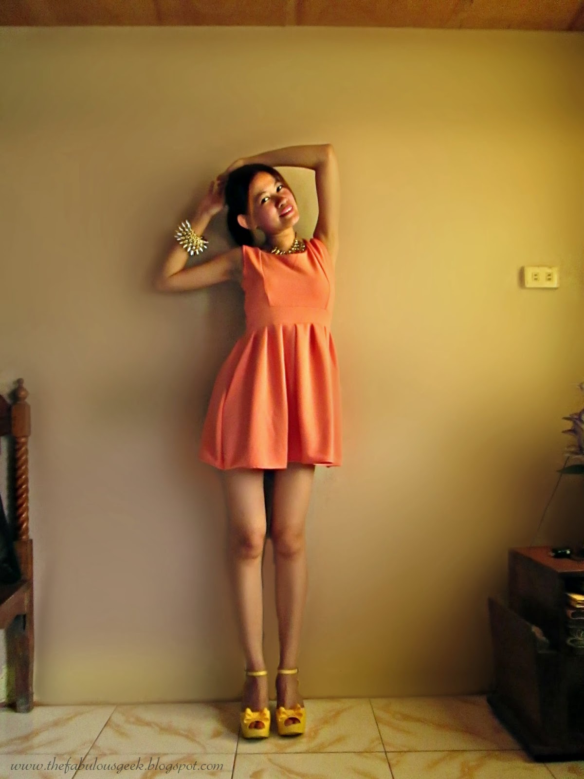 As it is this time of the year in the Philippines when you can almost no longer see the sun rise, and only dark clouds and heavy rains can be seen or heard, one can only wish to stay indoors, in bed, reading a good book while drinking a cup of tea. That would be quite dreamy, for me at least. How I wanted that kind of scenario! But no, despite the strong winds that can almost lift me off the ground, and I would be completely drenched in my corporate clothes, smelling like a bag of salt, I had no other options but to just open a huge umbrella, tread through the flooded streets while praying intently that I do not get myself Leptospirosis. Today, I am on day-off which is great since, aside from the fact that there is again a heavy downpour, I will finally get myself a much needed rest. I see that I will be sleeping the entire afternoon, or perhaps play my favorite Google games. Probably anything that could ultimately take my mind off from work, as these past few days had taken its toll on me. I will be taking the most out of this day and hopefully, tomorrow, the rains will stop as John and I will be going out to spend a post-Fourth Year Anniversary date. Such random things to say actually and pardon me, my mind has been locked out and set up on one thing: REST. So I'm leaving you guys with this simple outfit post, which was due a few months back. These photos had been in my files for far too long, my hair was still very short if you will notice. If you can recognize this peach mini dress as well, it was included in this post. I have mentioned previously that I would most likely be selling this since it was quite short, then again, I had a change of heart. I kept it and will just think of other ways on how to wear this piece. I guess that would be all for now. Leave a comment below if you liked it!